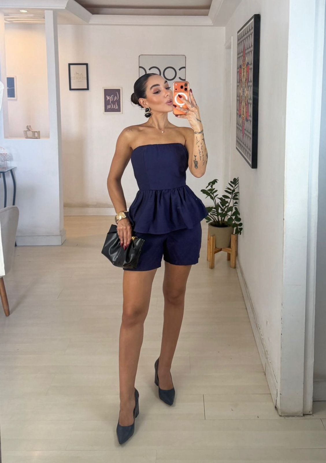 Peça leve e elegante feita em linho, ideal para quem busca conforto e estilo. O conjunto é composto por um top tomara que caia com modelagem ajustada e babado na barra, junto com shorts de corte reto que proporciona liberdade de movimento.